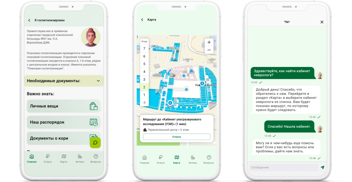 Implemented room-by-room routing within the hospital in collaboration with 2GIS (a Russian search company that develops digital maps and guides of cities), enabling patients to find routes to specific rooms